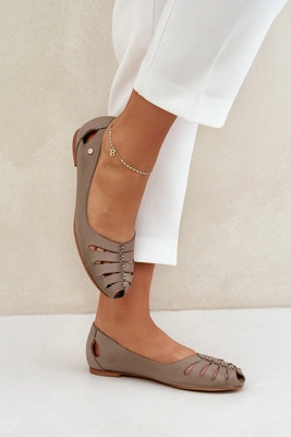 Zazoo 10009 Wygodne Skórzane Baleriny Damskie Ciemnobeżowe