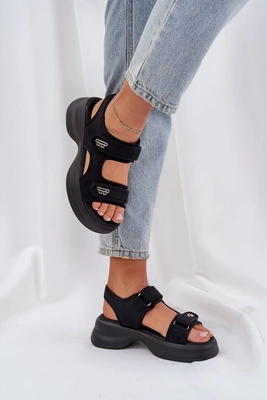 Materiałowe Lekkie Sandały Na Platformie Czarne Deniffia