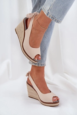 Sandały Na Koturnie Z Plecionką Beżowe Nanalis