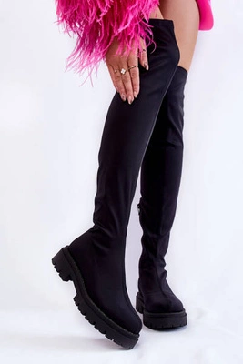 Damskie Zamszowe Kozaki Na Obcasie Lewski Shoes 2934/B Czarne