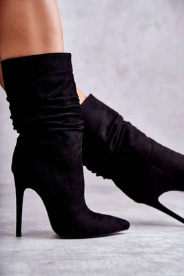 Damskie Zamszowe Botki Na Obcasie Czarne Ramira
