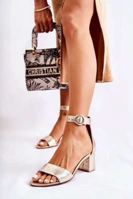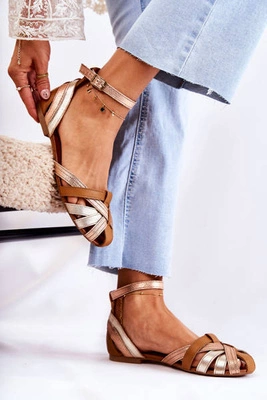 Skórzane Damskie Sandały Maciejka 01924-32 Złoto-Brązowe