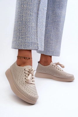 Ażurowe Damskie Sneakersy Na Koturnie Skóra Naturalna Beżowe S.Barski LR482
