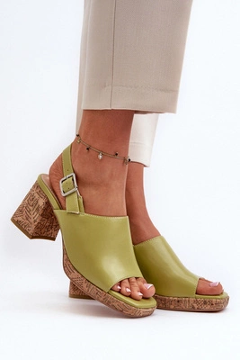 Damskie Sandały Z Eko Skóry Na Słupku Sergio Leone SK572 Pistacjowe