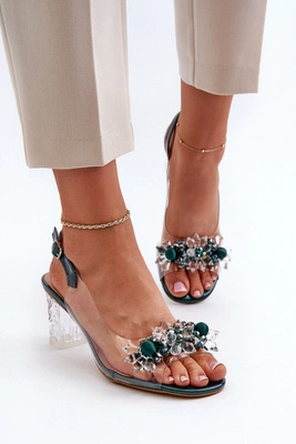Sandały Transparentne Na Słupku Z Ozdobami Zielone D&A MR38-D1