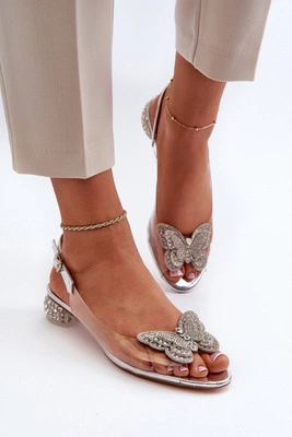 Transparentne Sandały Na Niskim Obcasie Z Motylem Różowe Srebrne D&A MR38-388