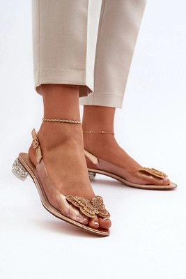 +3Transparentne Sandały Na Niskim Obcasie Z Motylem Złote D&A MR38-388