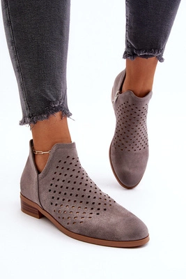 Niskie Botki Damskie Na Płaskim Obcasie Szare Janetris