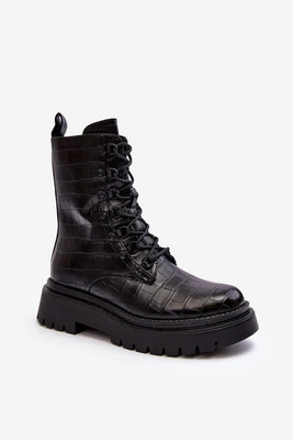 Damskie Botki Workery Z Ozdobnym Tłoczeniem Czarne Tarolia