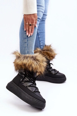 Śniegowce Damskie Z Futerkiem Na Platformie Czarne Nabilla
