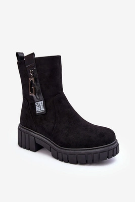 Zamszowe Botki Workery Damskie Czarne Dearia