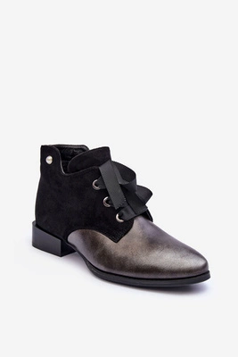 Zamszowe Botki Damskie Z Wiązaniem Czarne Lineanor