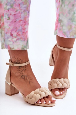 Zamszowe Sandały Z Warkoczem Beżowe Essenza