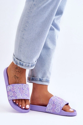 Damskie Klapki Z Emotikonami Fioletowe Cosette