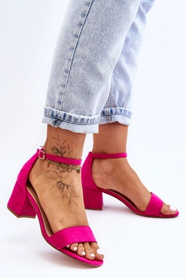 Zamszowe Klasyczne Sandały Na Niskim Obcasie Fuksja Honeymoon