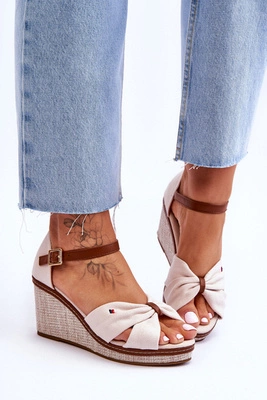 Sandały Damskie Na Plecionym Koturnie Beżowe Judith
