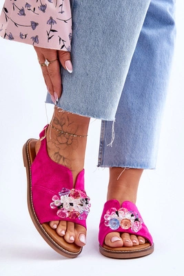 Damskie Sandały Japonki Z Kamieniami Fuksja Lenisa