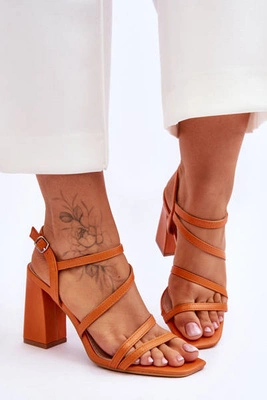 Skórzane Sandały Na Słupku Pomarańczowe Florentina