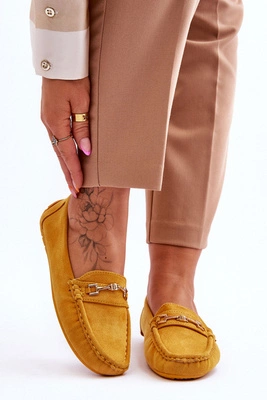 Zamszowe Mokasyny Z Ozdobą Żółte Eleina