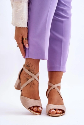 Zamszowe Sandały Na Obcasie Z Cyrkoniami Beżowe Aniya