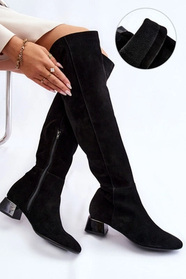 Zamszowe Kozaki Przed Kolano Na Platformie Czarne Lemar Spectrum