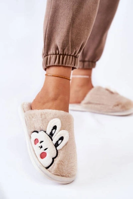 Damskie Futrzane Papcie Z Królikiem Beżowe Trisha