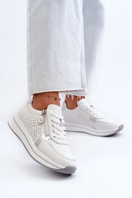 +1Ażurowe Sneakersy Damskie Na Platformie Skórzane Białe Peilaeno