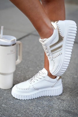 Sneakersy Damskie Na Platformie Złote Ofenale