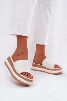 Klasyczne Klapki Damskie Na Platformie I Koturnie Białe Florenis