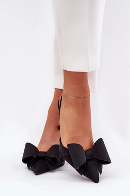 Szpilki Z Odkrytymi Piętami I Kokardką Czarne Eklevia