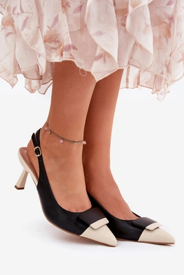 Eleganckie Szpilki Z Ozdobą Eko Skórzane Czarne Ottoles