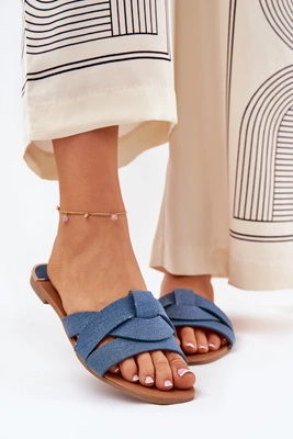 Płaskie Klapki Damskie Z Przeplatającymi Się Paskami Jeansowe Selaenor