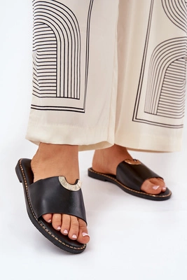 Klapki Damskie Eko Skórzane Z Ozdobnymi Detalami Czarne Mevith