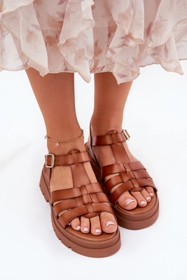Eko Skórzane Sandały Damskie Na Platformie Camel Nendales
