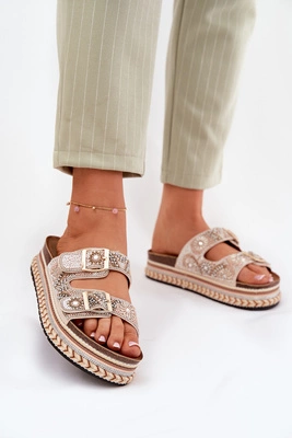 Klapki Ze Zdobieniem I Klamrami Na Platformie Złote Mellene