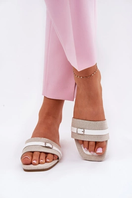 Płaskie Klapki Damskie Z Paskiem I Sprzączką Beżowo-Białe Zilina