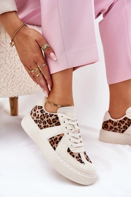 Sneakersy Damskie Z Panterką Na Platformie Beżowe Nativira