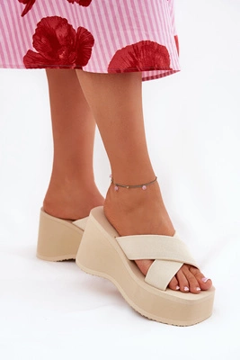 Klapki Damskie Na Koturnie I Platformie Beżowe Sevolee