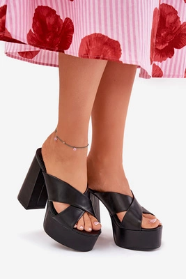 Klapki Damskie Na Platformie I Słupku Czarne Lenobos