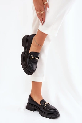 Damskie Mokasyny Ze Złotym Detalem Eko Skórzane Czarne Gemitha