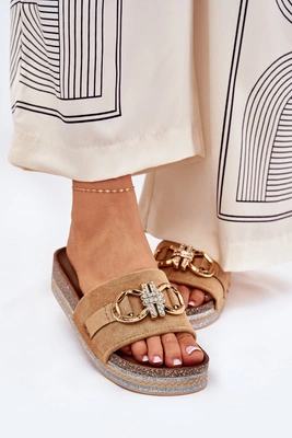 Klapki Damskie Na Platformie Z Brokatem I Złotą Ozdobą Camel Rilirea