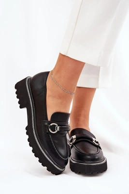Mokasyny Damskie Zdobione Cyrkoniami Czarne Patina