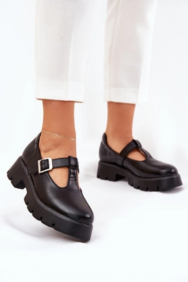 Półbuty Damskie Z Klamrą Na Platformie I Płaskim Obcasie Czarne Venda