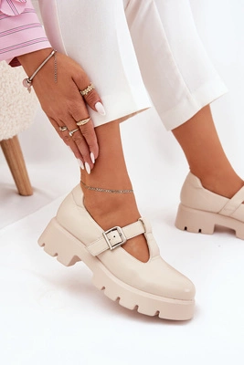 Półbuty Damskie Z Klamrą Na Platformie I Płaskim Obcasie Beżowe Venda
