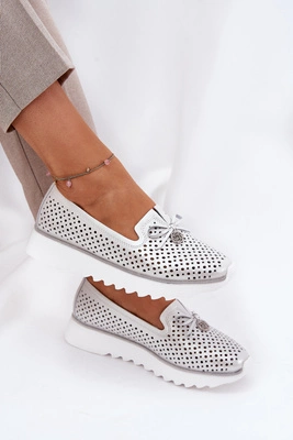 Skórzane Ażurowe Półbuty Damskie Z Naturalnej Skóry D&A LR51-631 Srebrne