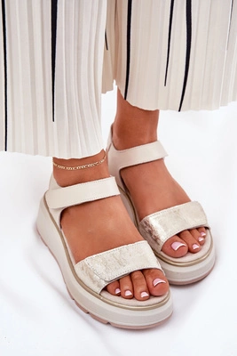 Skórzane Sandały Damskie Platformie I Koturnie Na Rzep S.Barski LR51-543 Złote