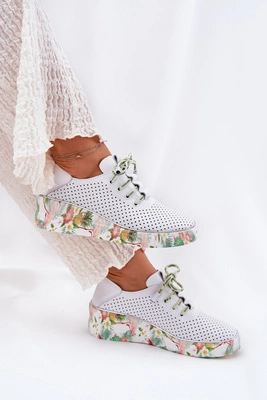 Skórzane Półbuty Na Koturnie Ze Wzorem Artiker 54C1807 Biało-Zielone