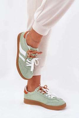 Niskie Sneakersy Damskie Z Podwójnym Sznurowaniem Zielone Ventus