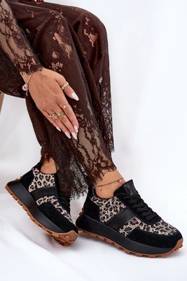 Zamszowe Sneakersy Damskie Na Platformie Panterka Vinceza 66793 Czarne