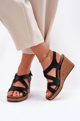 Sandały Damskie Na Koturnie Sergio Leone SK223 Czarne